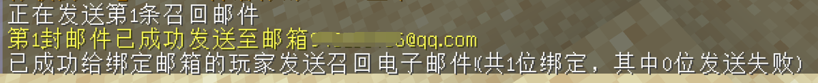 3.管理员使用指令/recall,即可自动依次向已经进行邮箱绑定的玩家邮箱发送电子邮件